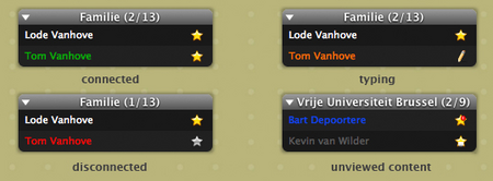 DescriptionI was a bit disappointed in most of the Contact List Styles, so I decided to make my own.I made it a rather dark Contact List Style so that I was able to visually enhance certain events: - online contacts are bright white - away/idle contacts have a softer gray color - events suchs as connected/disconnected/typing/unviewed content... have their own nice color - status icons are clearly visible Other things I kept an eye on: - readable, yet small font - whitespace - group bubbles for the win! :D I didn't want any user icons to break the consistent look, you can add them yourself if you want to. Any suggestions are welcome! I hope you enjoy it as much as I do! CommentsYou can reply to individual comments by clicking the "Reply" link next to each. # by Lode on 02/01/06 at 18:50:33Thx for the comments so far!